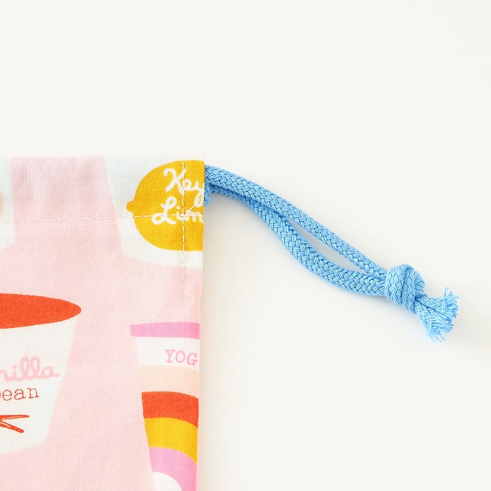 水色の紐がアクセントになり、可愛すぎないトレンド感ある色使いがおしゃれです。